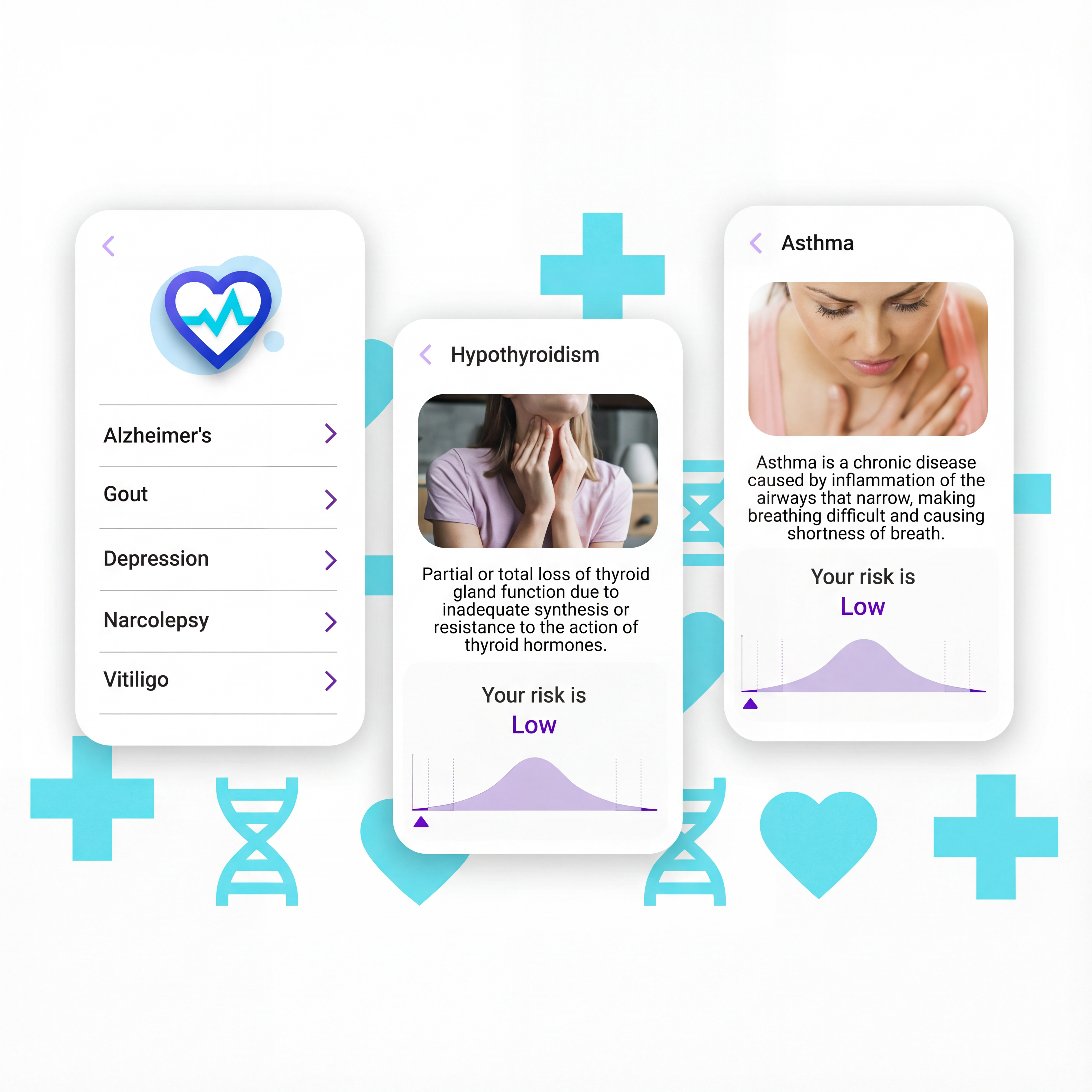 2. გენეტიკური მიდრეკილება და რისკები: აღმოაჩინეთ გენეტიკური სისუსტეები, 105-ზე მეტი ჯანმრთელობის მდგომარეობის მიმართ.